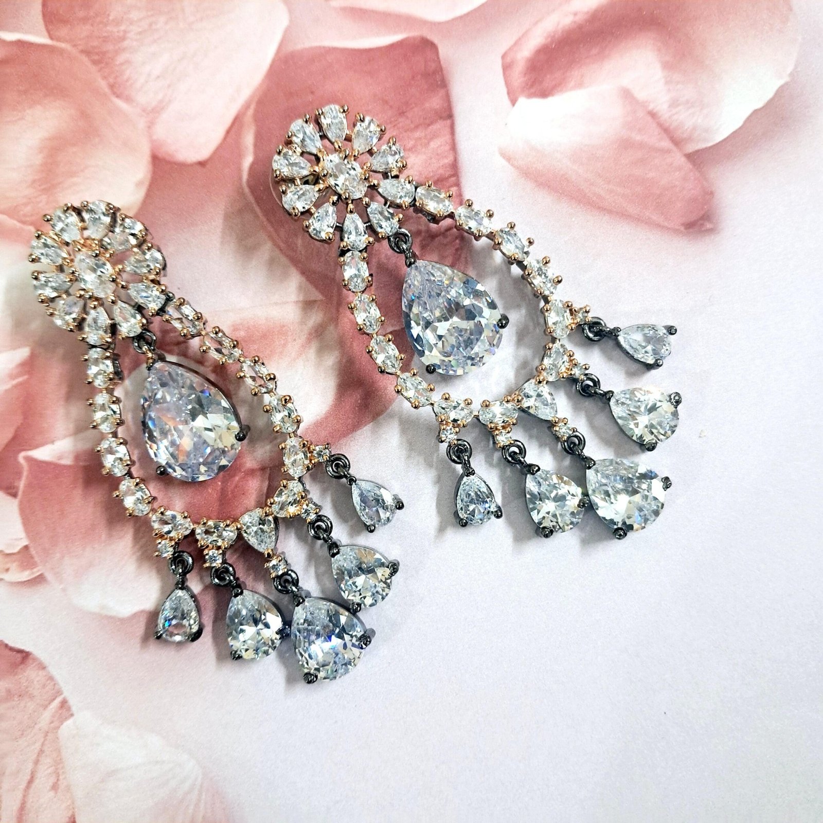 Copper Gold Plated American Diamond Danglers Earrings - Garimas Copper Gold Plated American Di...