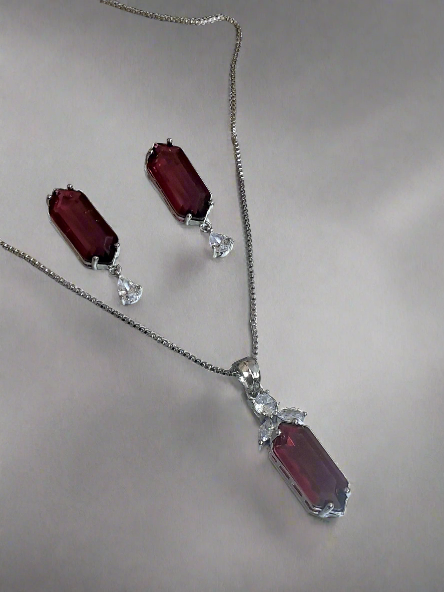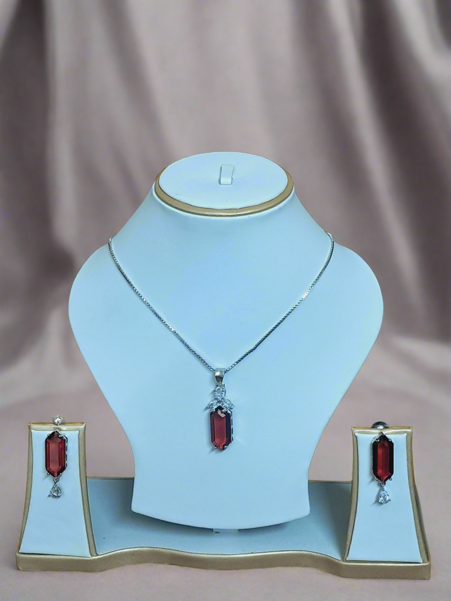 This elegant pendant set showcases a vibrant red ruby centerpiece beautifully complemented by dazzling CZ stones. The premium silver-plated chain adds a touch of sophistication, making this piece perfect for both everyday wear and special occasions. We’ve carefully crafted this pendant set to help you express your unique style while providing lasting beauty you can treasure for years to come.