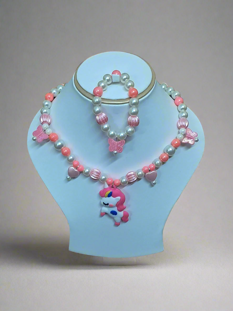 Be the first to review “Pink Pearl Beaded Unicorn Necklace and Bracelet Set for Girls”